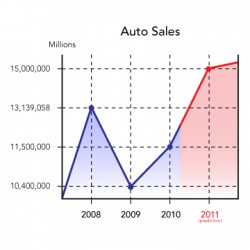In 2008, new car sales saw their worst year since 1992 with total US Sales of 13,139,058. In 2009, sales dropped even 21% lower with total US sales of 10.4 million – reaching a 27-year low. In 2010, sales climbed back up to 11.5 million and 2011 is looking even brighter. JD Power & Associates predicts that US auto sales will climb to around 13 million units and some JD analysts have even said 15 million. This is great news!